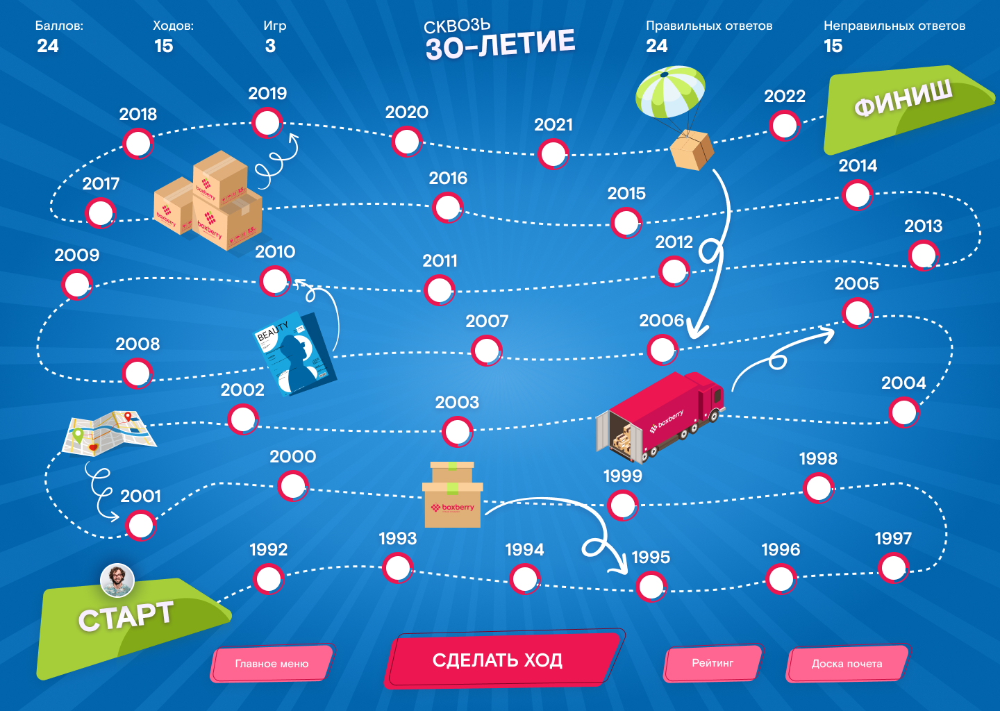 Сквозь 30-летия - интерактивная игра по истории Боксберри