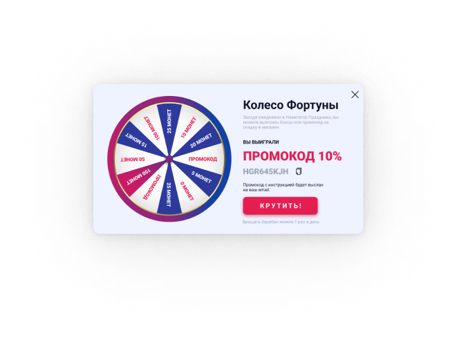 Вы можете расширить функционал вашего терминала при помощи дополнительных модулей: передача баллов с одного аккаунта на другой, получение ачивок за выполнение комплекса заданий, возможность их накопления и обмена на суперприз, бонусы за вход и т.д.